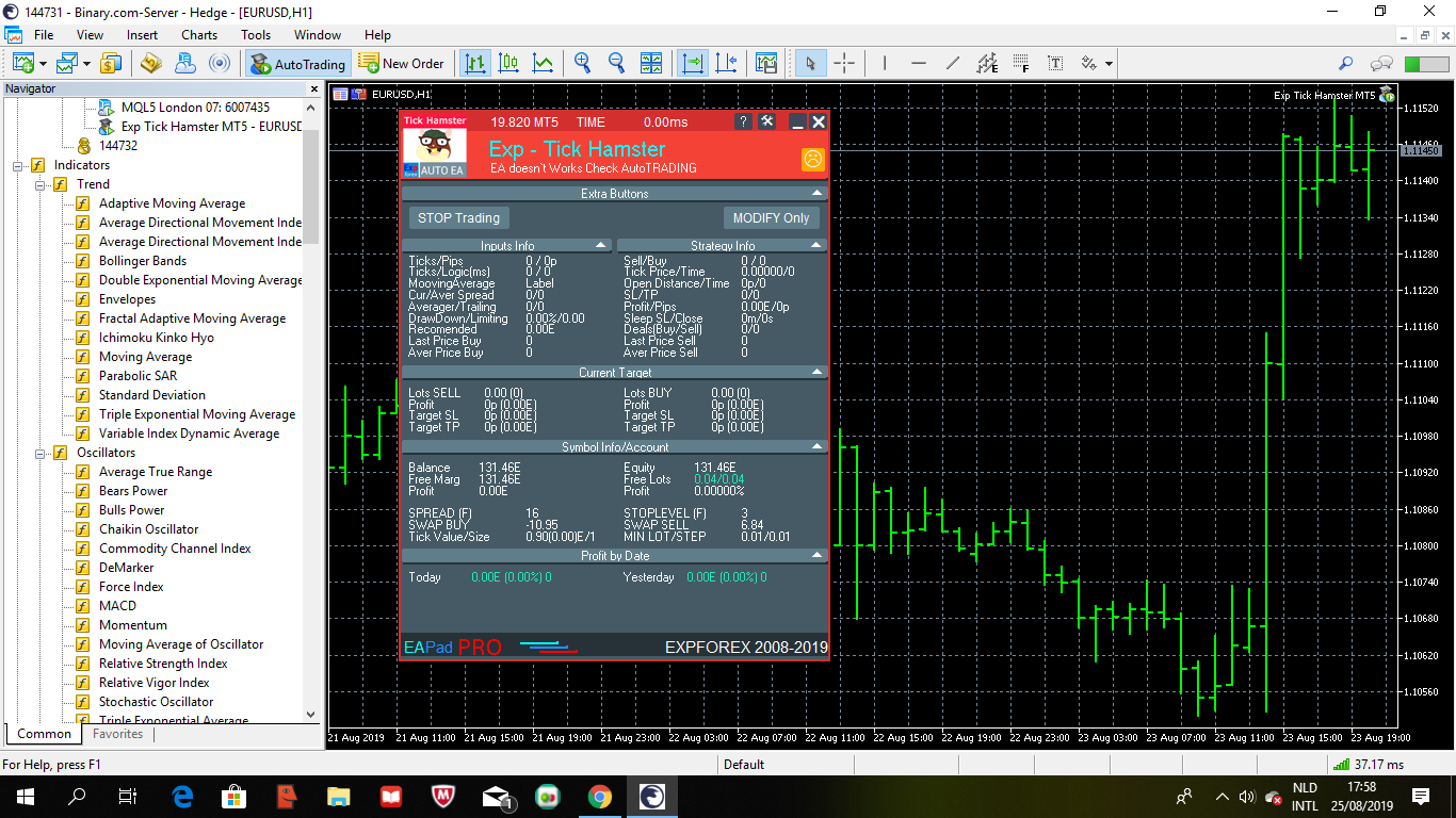 В первую очередь Вам необходимо выяснить почему советник не открывает позиции. Квадратик на нашей панели EAPADPRO должен быть зеленым. Если он красный, тогда вы не разрешили советнику торговать. Либо на Вашем счете запрещено открывать позиции советником. Причины, по которым советник может быть не включен вы можете почитать в нашей статье: GUI для советника EAPADPRO панель управления для наших экспертов.