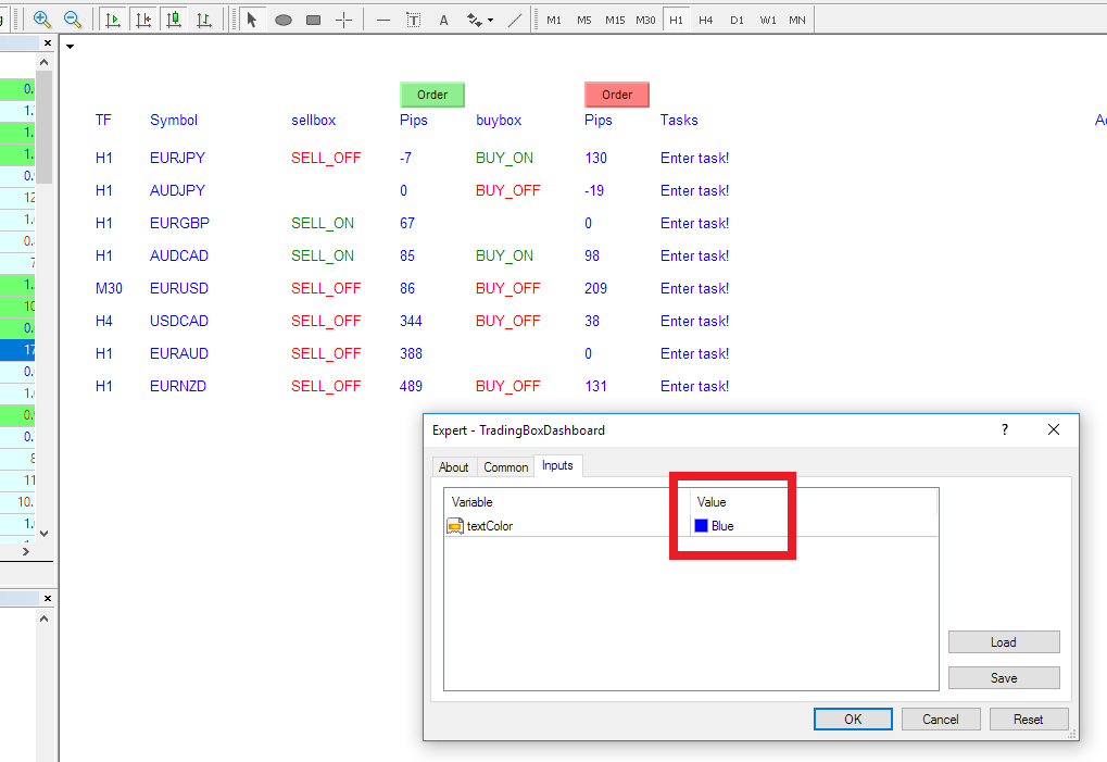 I am also attaching trading box dashboard example from my mt4 below (dashboard is showing order boxes from EA called Trading box Order management)