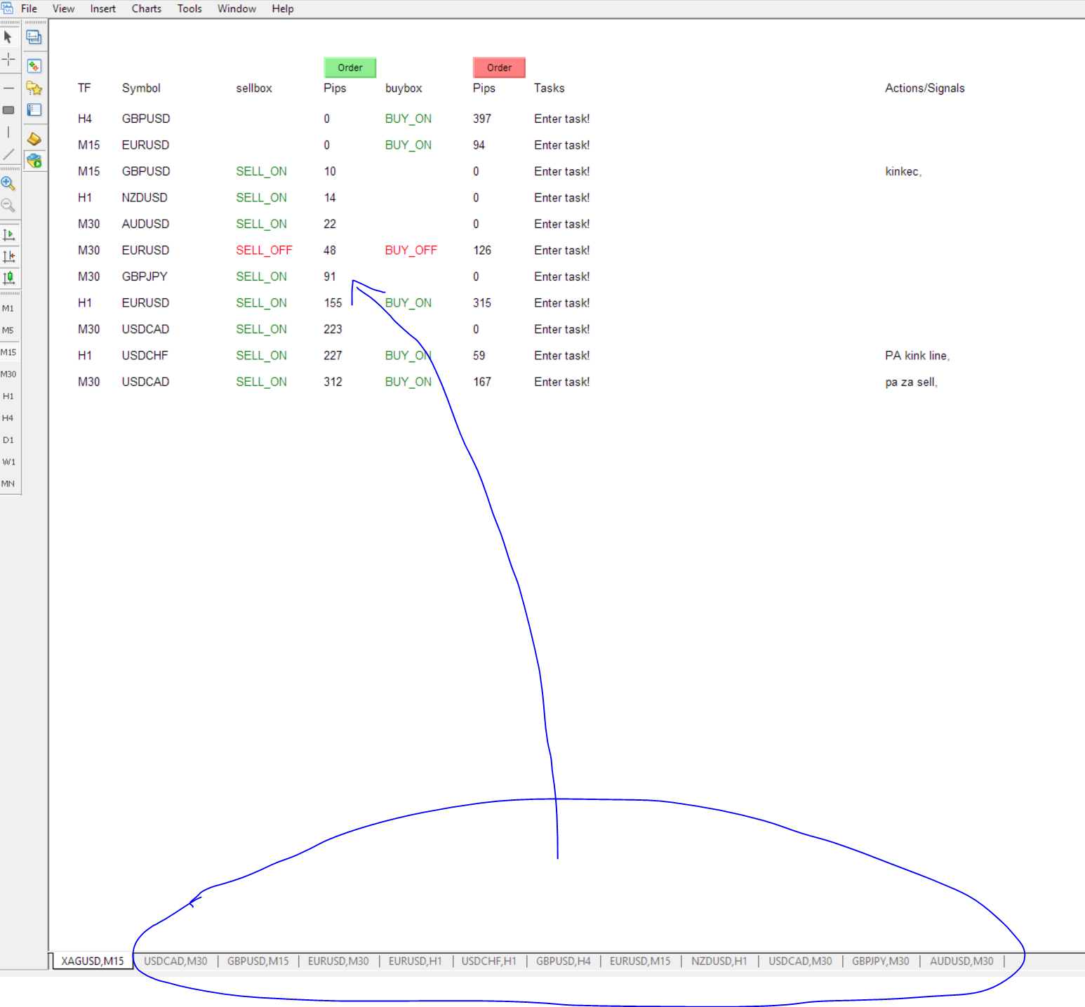 There is texst label where you can enter diferent tasks for come chart (for example wait for price action...)