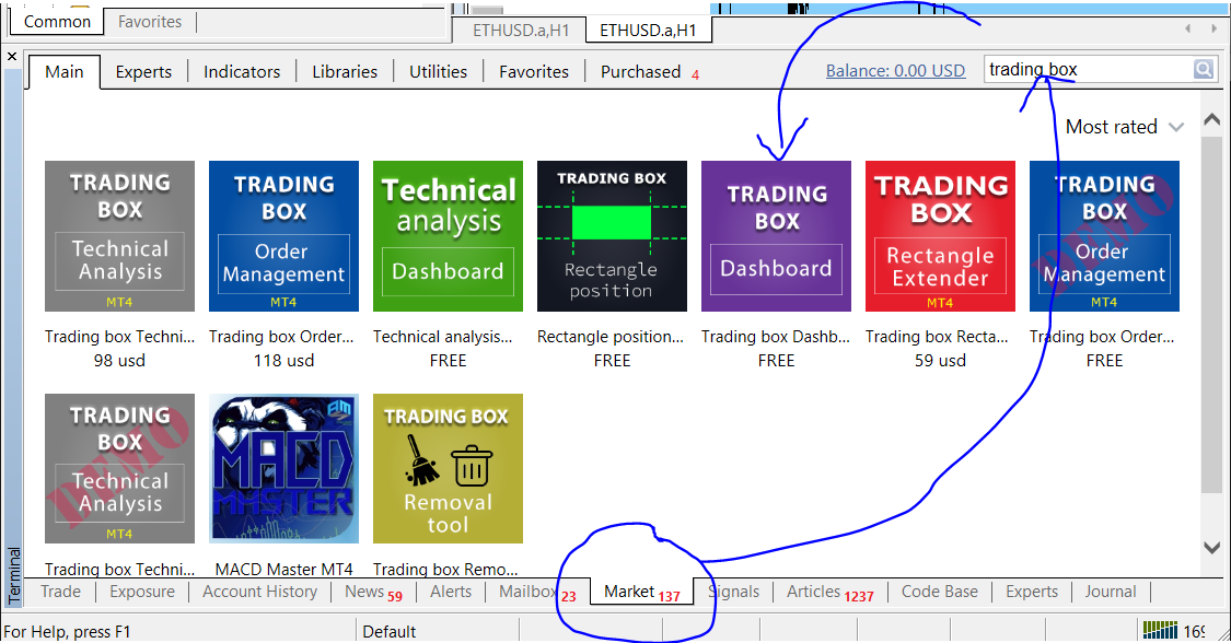 I prepared some manuals how to download tools from mql5 market here