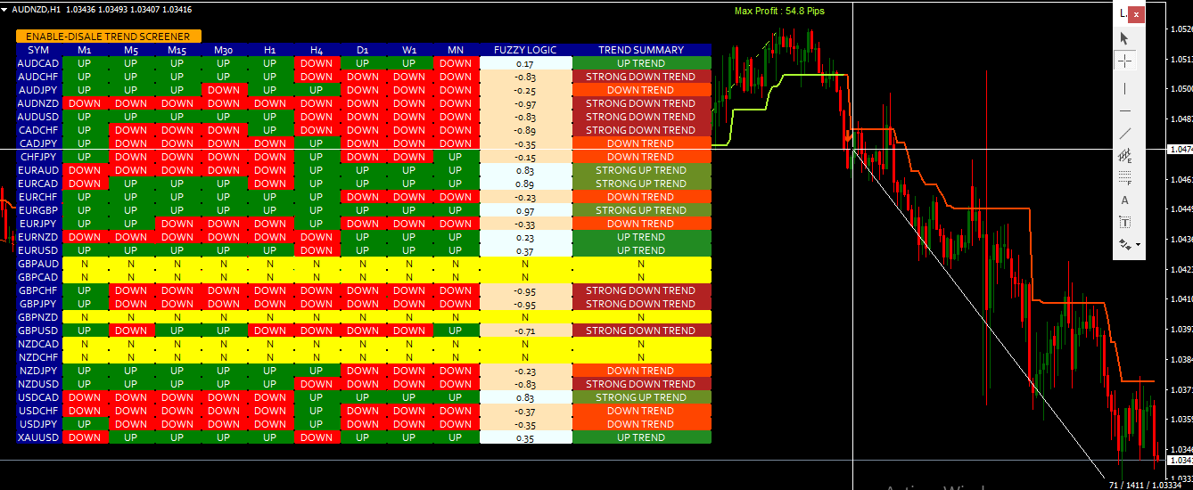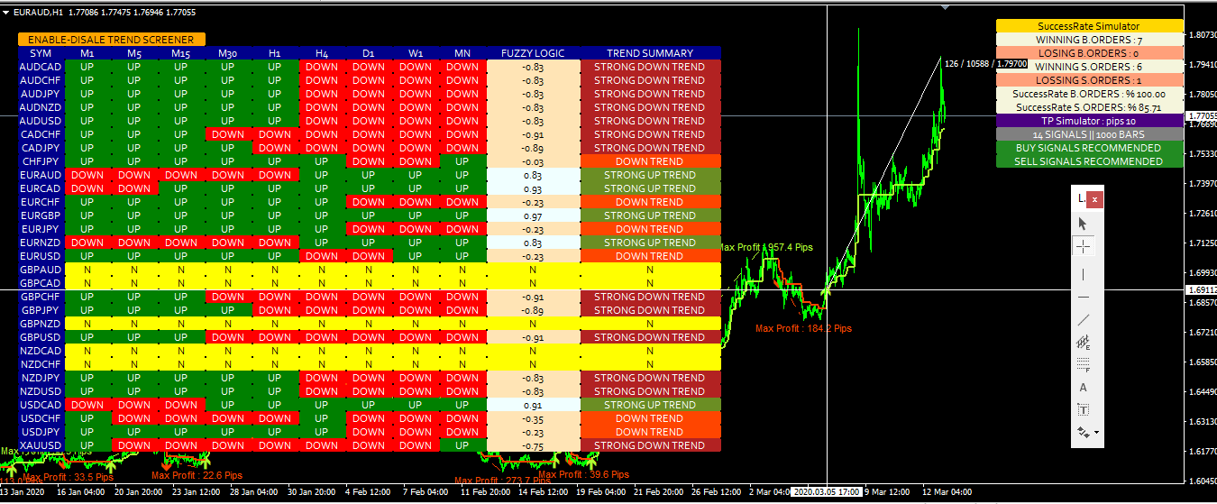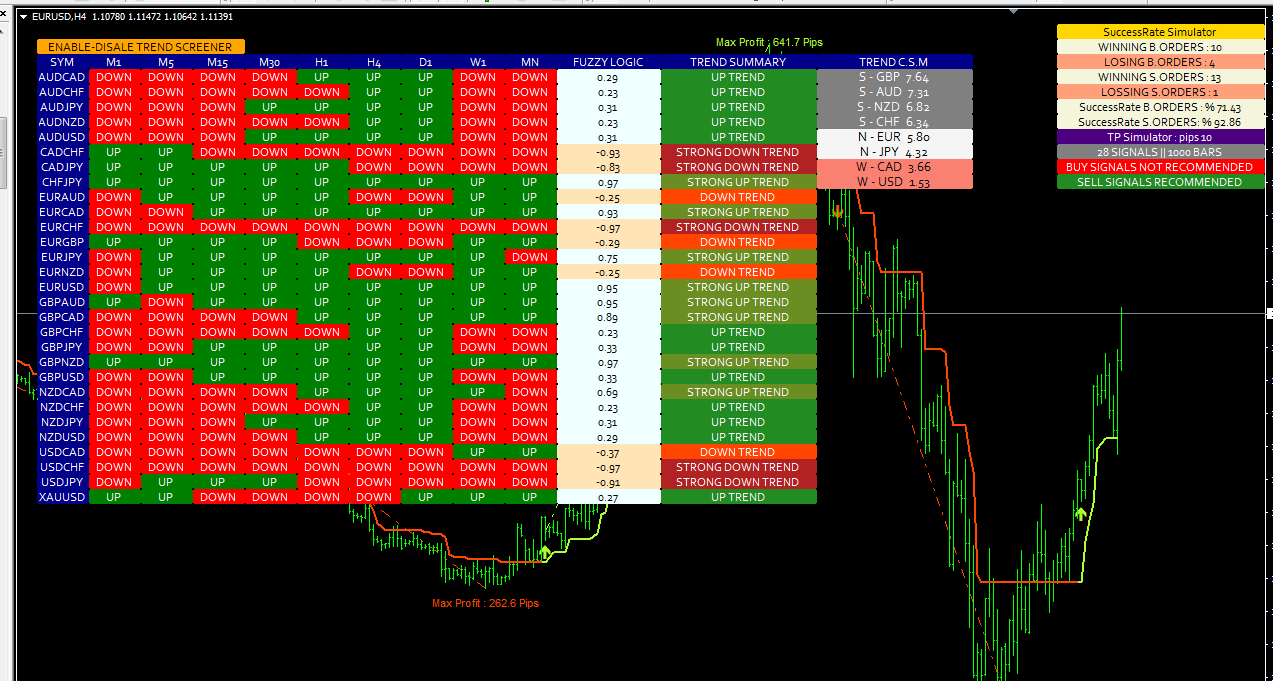 3. We have developed Trend Screener with many algorithms to increase the probability of trading with the trend and the best trend as much as possible. ( Trend Dashboard with trend Classification, Currency Strength Meter, Trend Line, and Success Rate Simulator )