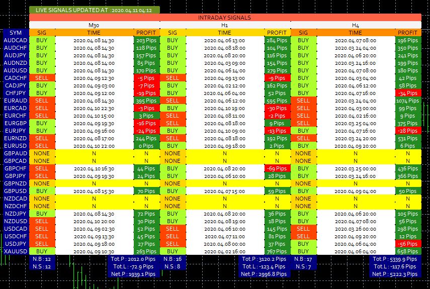 This a screen-shot from the indicator of how it will display all signals :