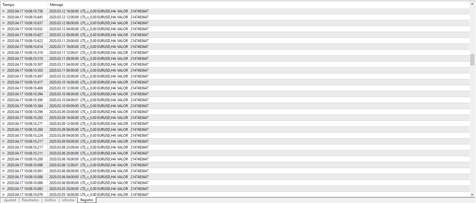 As you can see in the attached graphic, only values corresponding to the EMPTY_VALUE appear, the dates and times start from 01012020, I think it is unnecessary to show them all the hours since they are innumerable images.