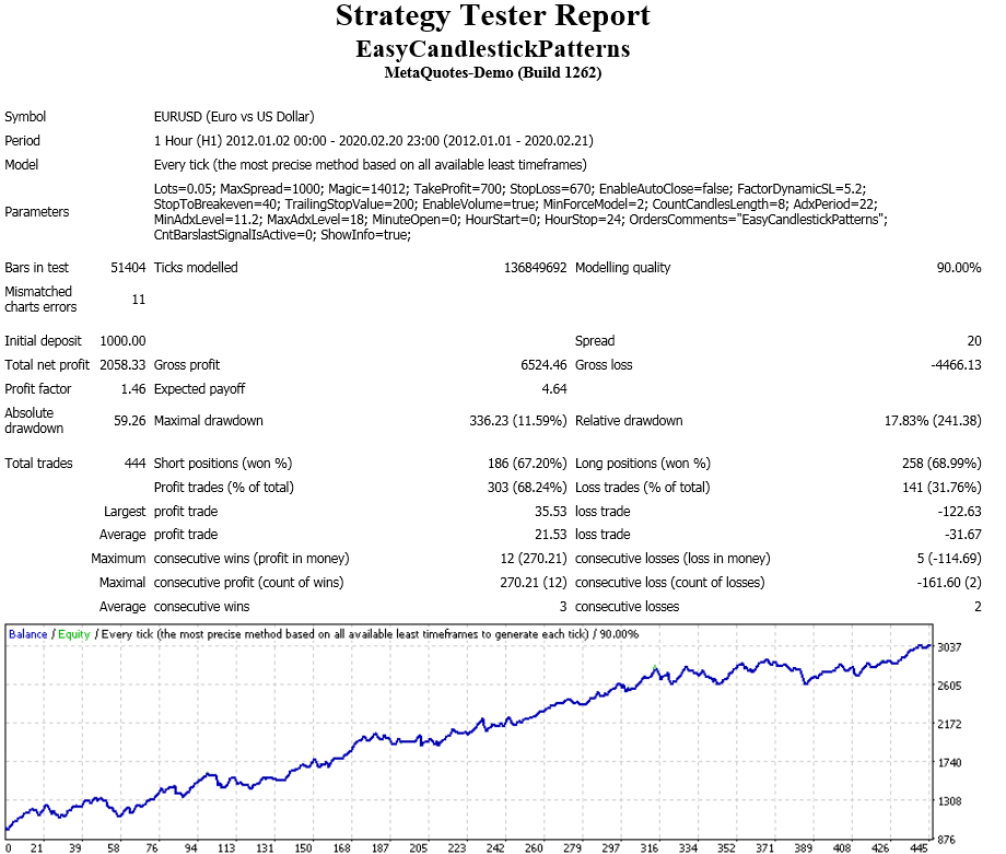 EUR/USD, H1 settings