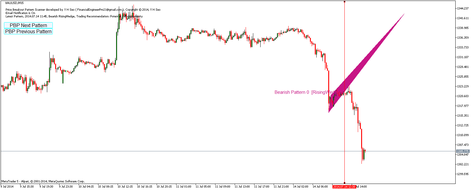 So when there is rising wedge pattern appear. You will see ocassional rear breakout text on our Price Breakout Pattern Scanner. This is exactly what I meant by "ocassional rear breakout".