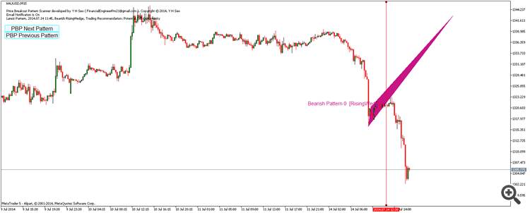 Just for compariosn purpose, I will also show you more complete form of rising wedge patterns. Also note that even with complete form of rising wedge patterns you can still have rear breakout. The essense of this trading strategy is that you trade on breakout.