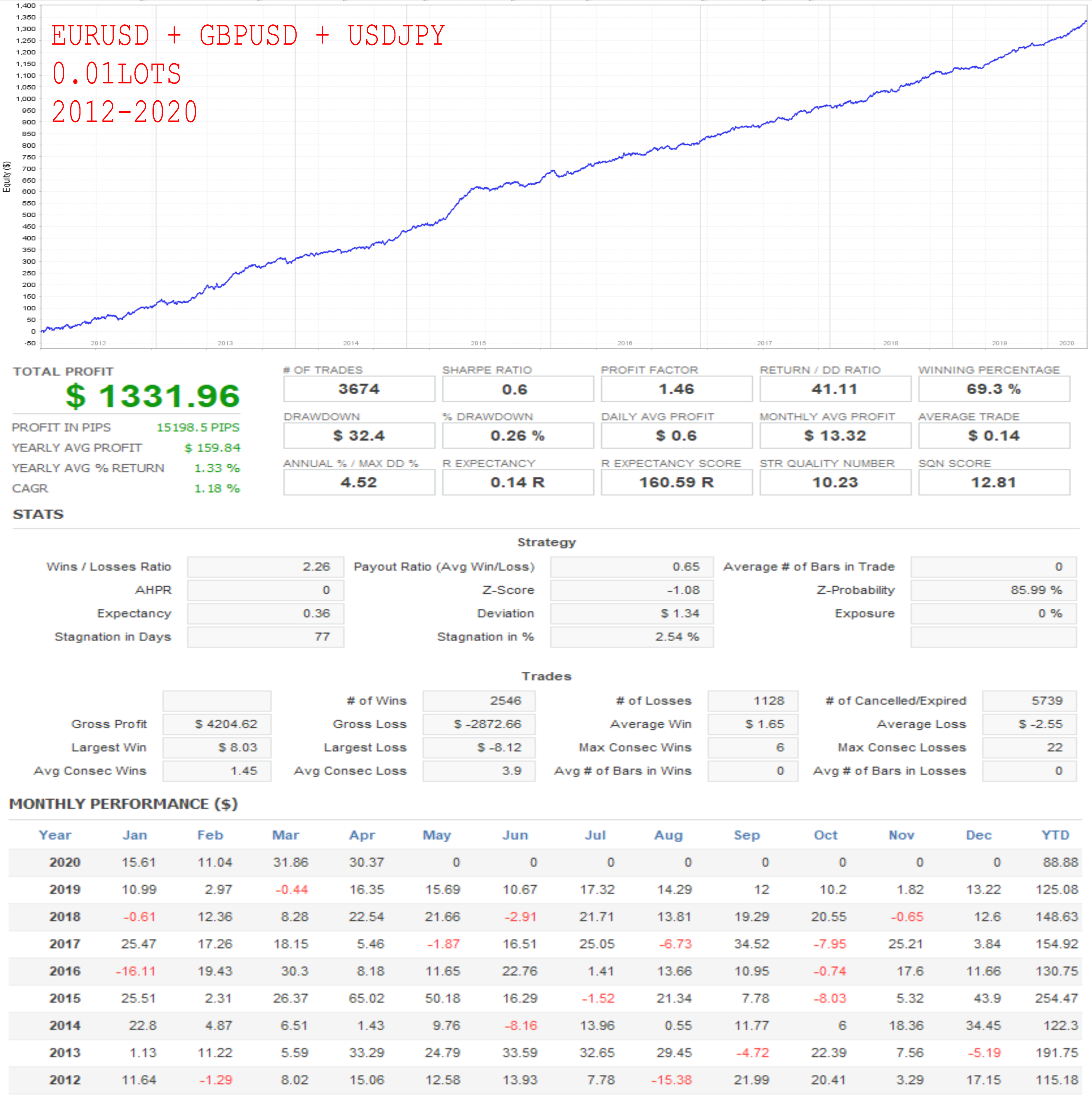 Running all 3 pairs at same lotsize (fixed lotsize) shows stable growth.
