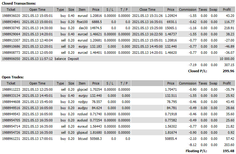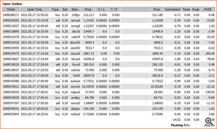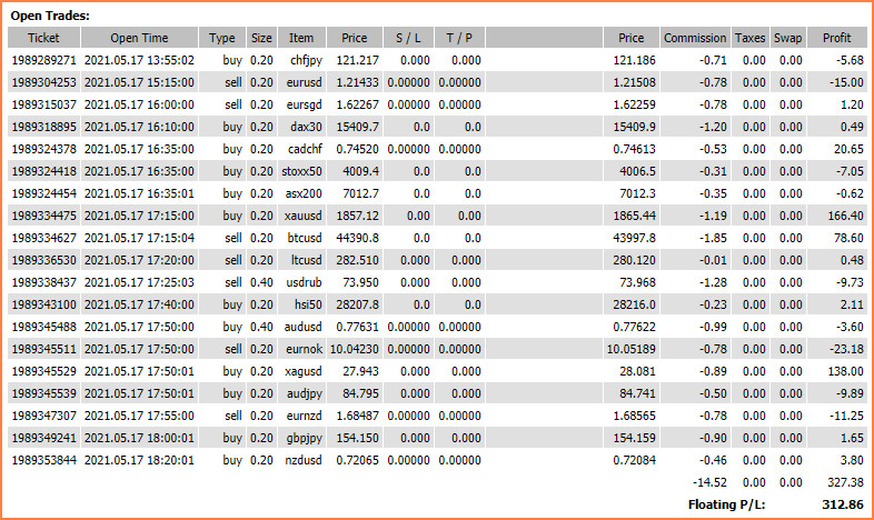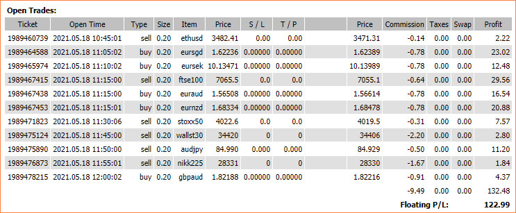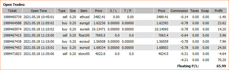 📌 When you have a lot of open positions and a trading day (or even a trading week) is coming to an end, a good option would be to close both profitable and losing positions completely at the same time. As in today's example on May 21, 2021.