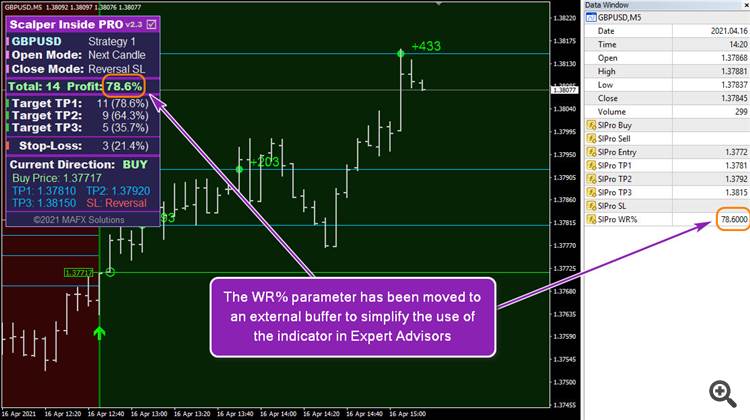 The WR% parameter has been moved to an external buffer to simplify the use of the indicator in Expert Advisors: