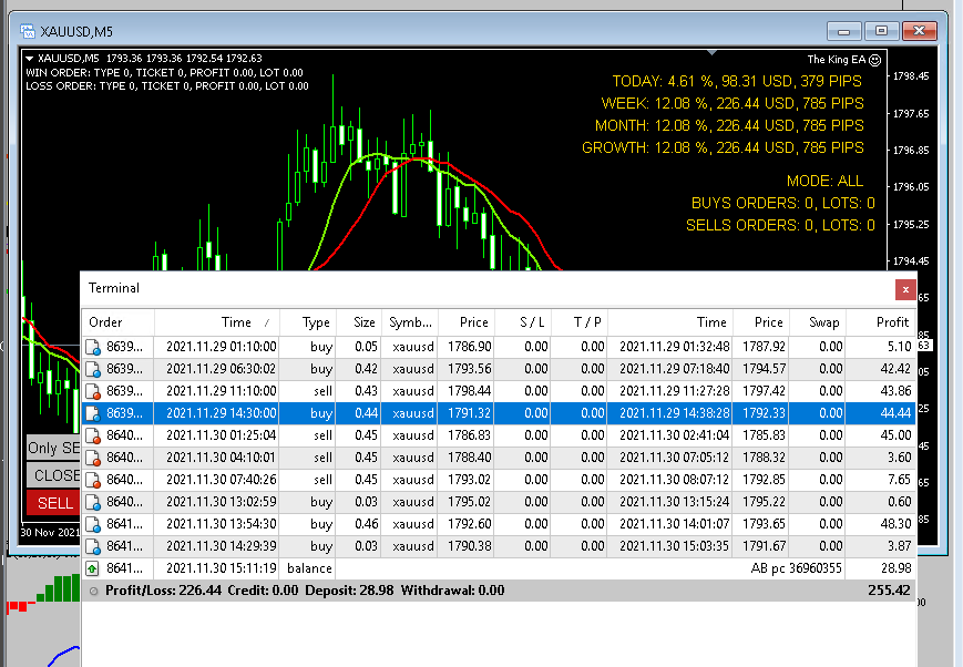 I tried the Grid EA Pro robot for 4 months, which brings great profits, so I decided to buy the king and install it on my computer with the default settings, but unfortunately it caused a big loss.