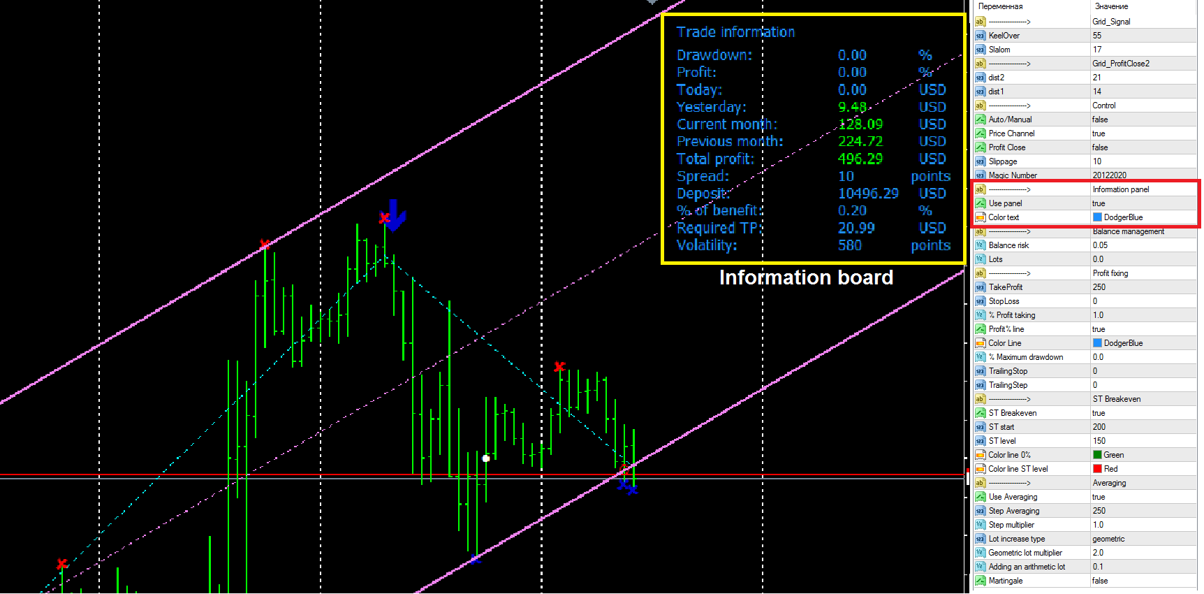 тест советника на промежуток 3 лет . Настройки индикатора с лева