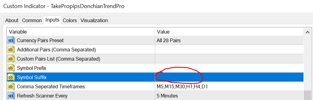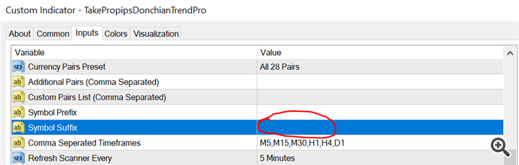 Custom Pairs List (Comma separated) – this input will only work if the selected option on “Currency Pairs Pre-set” is “Custom Paris List”. Example, if your brokers symbol name has a suffix (EURUSD.m instead of just EURUSD), then you enter the symbol name “EURUSD” and then add “.m” on the Symbol Suffix input. This input is CASE sensitive.