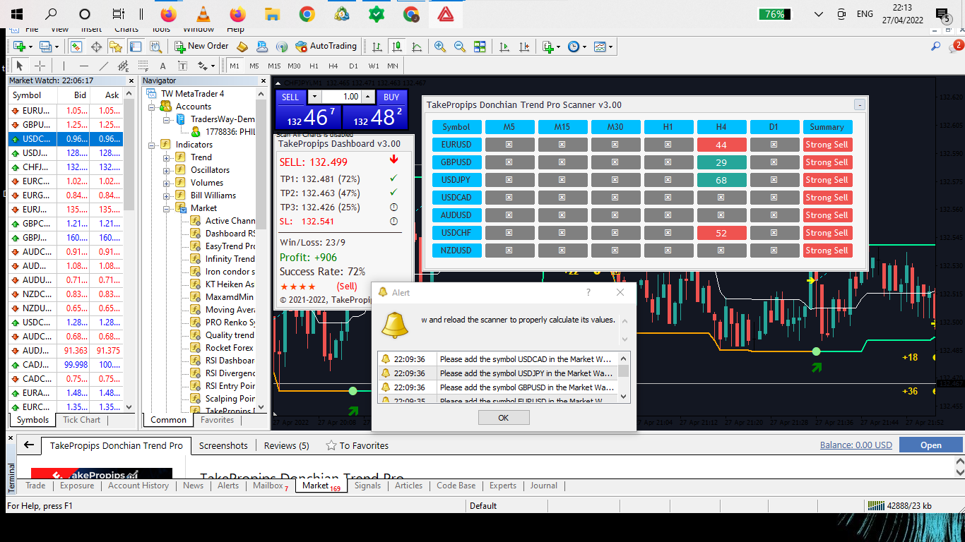 Hello, i tried the indicator the next day and it still giving me the same problem. 0 or x values on the dashboard. The dashboard is basically not working.