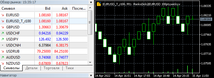 Добрый день! После того, как Ренко график сформирован у меня нет движения цены. Т.е. график отображает прошлое и торговать по нему в реальном времени не возможно.