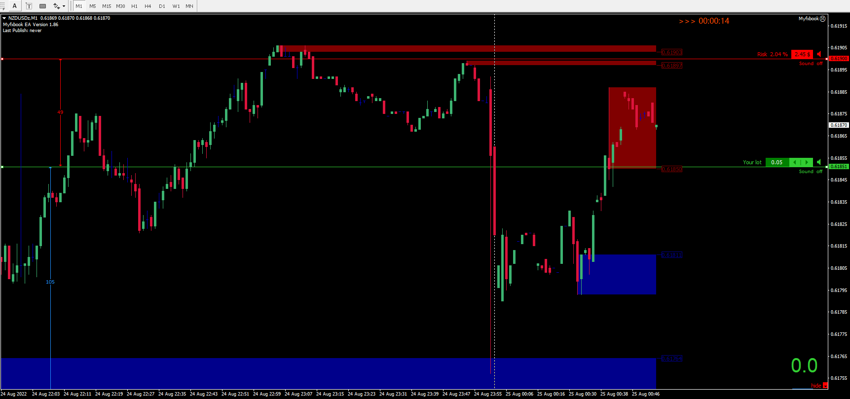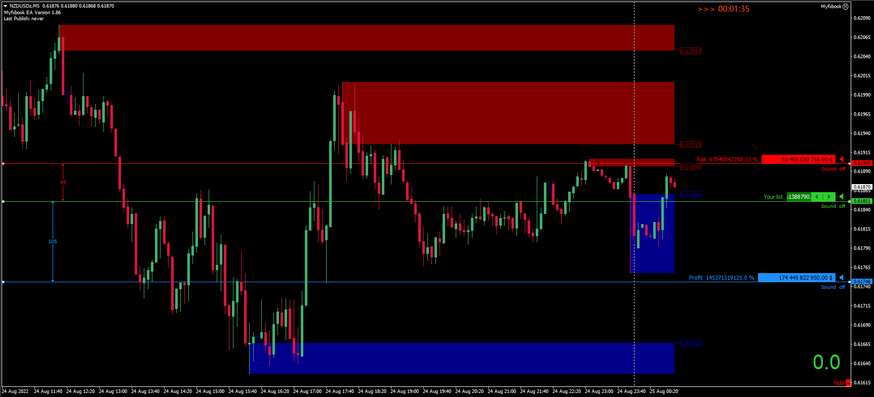 Чтобы выставить минимальный лот (0,01), надо тысячу раз кликнуть по стрелочке, потому что просто написав 0,01, ничего не получается, лишь какие-то фантастические цифры, то же с процентами; потратив довольно много времени на выставление лота и процентов, все сбивается при переключении тайм-фрейма - задумка хорошая, на деле - ...