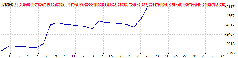 Данный торговый робот использует полный контроль открытия баров и не требует оптимизации / тестирования / моделирования с точностью для каждого тика. Советник специально разрабатывался для сверх-скоростной оптимизации по ценам открытия. Несколько бэктестов по EURUSD показывают что точность в 99% абсолютна не нужна для данного робота и вполне хватит быстрых тестов по ценам открытия.