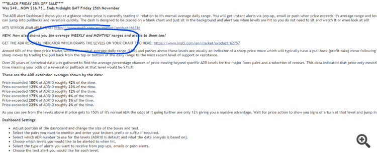 Hello The dashboard works fine. I've seen your webinars where you explain how you came up with calculating the mean. Is it possible to study the excel files you have built? There may be a further analysis. Suggestions to improve the dashboard: 1) The whole table should close 2) when you go to the signal it should allow you to go directly to the graph by indicating the value with an arrow. P.S. I also bought the ADR indicator. Thank you