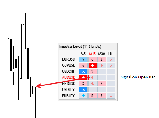 I've just bought your "UPD1 Impulse Level" indicator, but on the dashboard I still have a 1 bar offset with the signal (I've looked at the parameters and there's no possibility of reducing it to 1 bar in order to have only the current signals).
