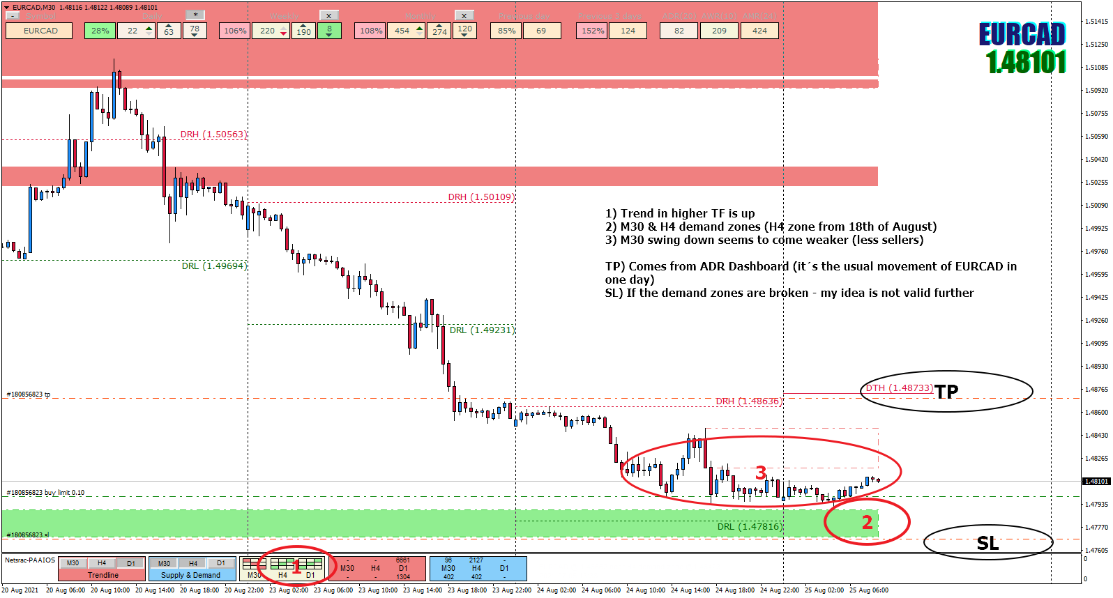 In addition, my buy-limit was not filled. So I am closing this trade (but the zones are still valid).