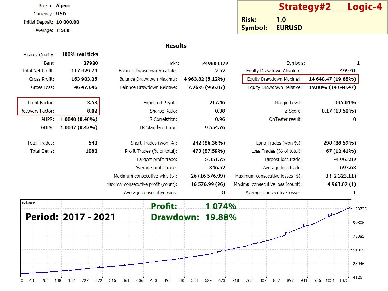 Be sure to test and choose the optimal level of risk with which you will be comfortable trading. If you change the risk parameter, then proportionally change the profit parameter.