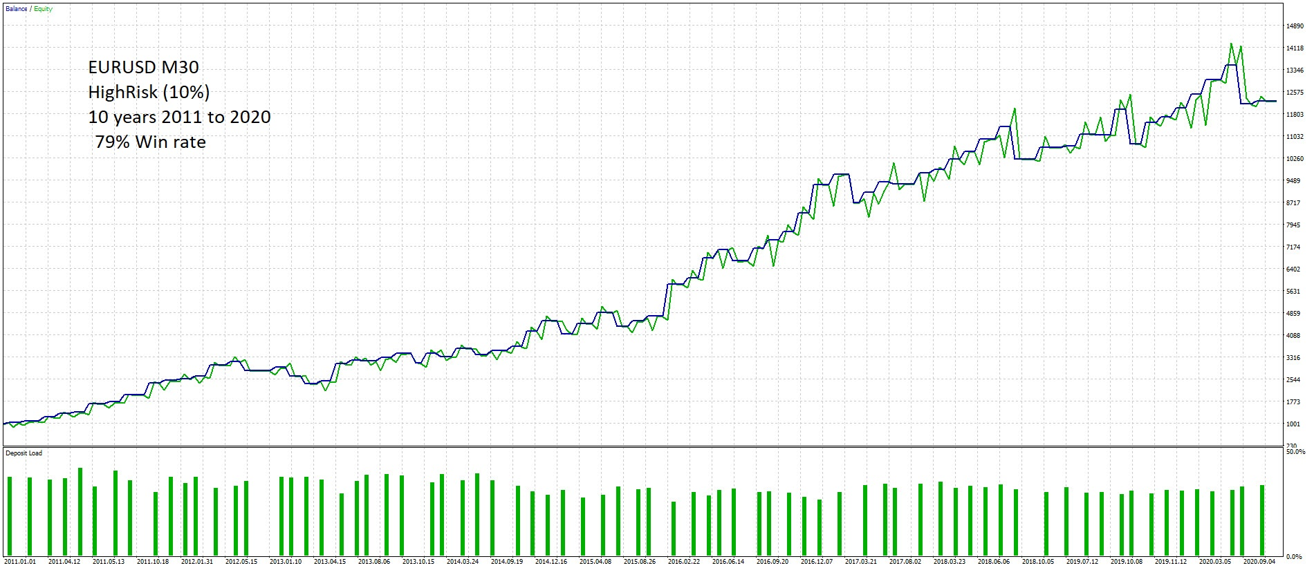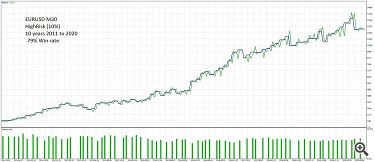 EURUSD-M30. 12x profits at 10% Risk on 10 years.