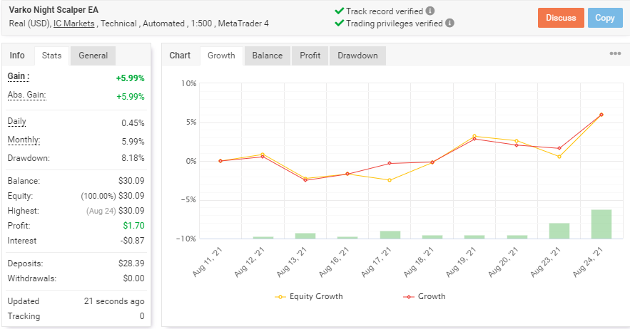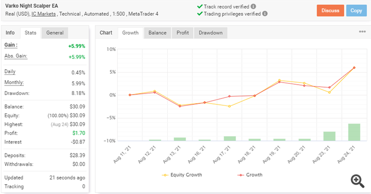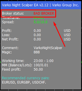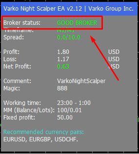 Note that in the new graphic panel, the status of the broker has appeared. Which helps to choose the right conditions for trading our robot.