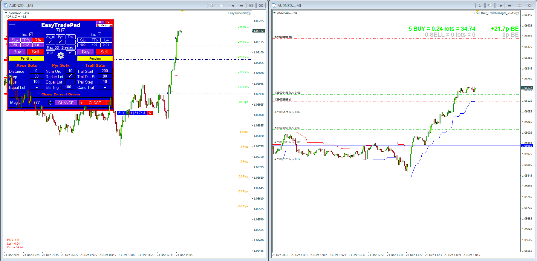 2. Now using EasyTradePad pyramiding, many times I see a profitable pyramid is built, only to see the price retrace before reaching the TP.