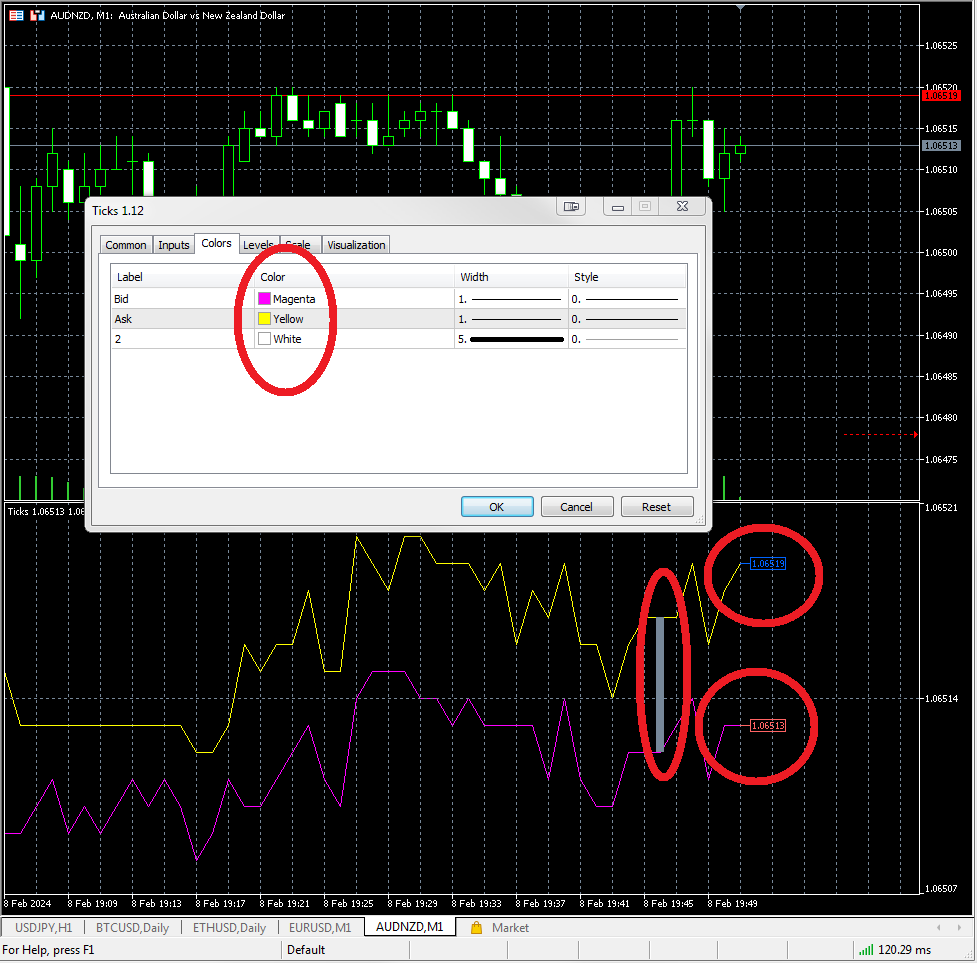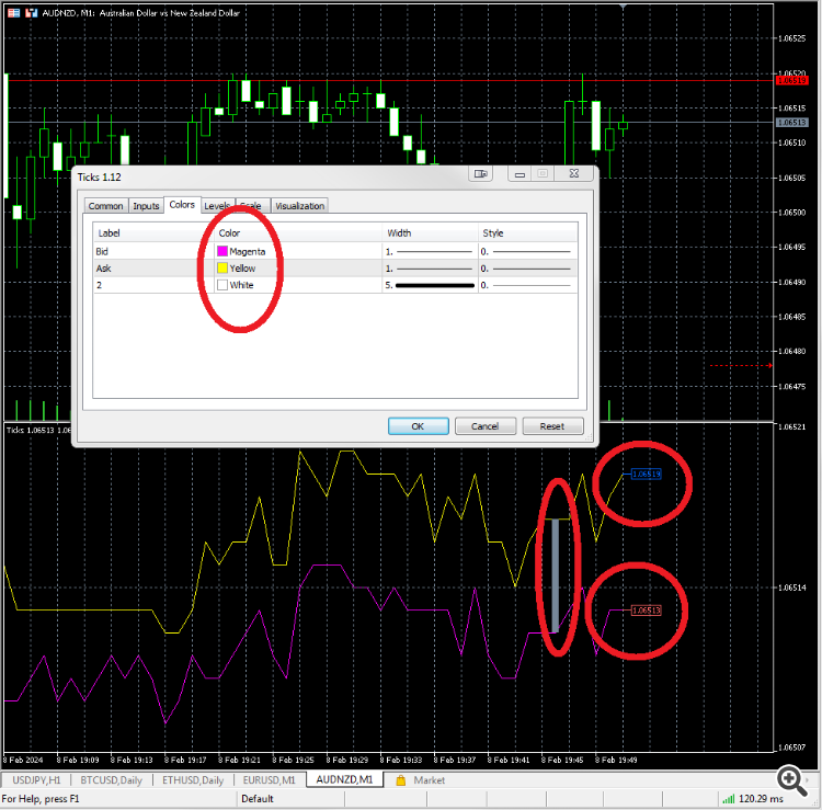 Colors as input parameters will give the possibility to customize the indicator also in testing mode through iCustom. Also bar separator line width should be created as input parameter, for example bar separator is almost not visible (see image).