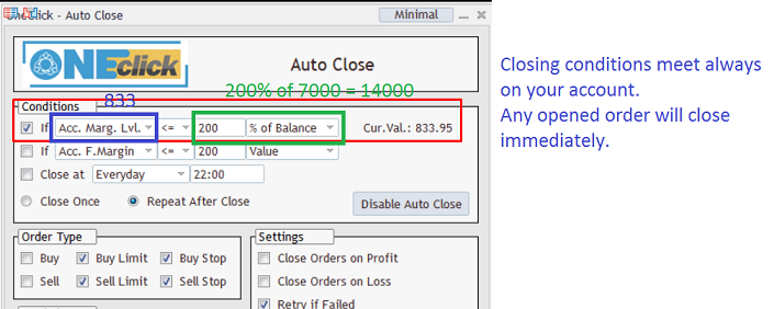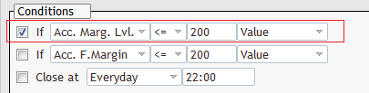 even if the condition I set (Acc. Margin Level <= 200 % of Balance) is NOT met.
