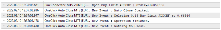 You can see in the screenshots that my 'EA' is trying to open 'limit' orders, but this OneClick EA is closing them immediately.