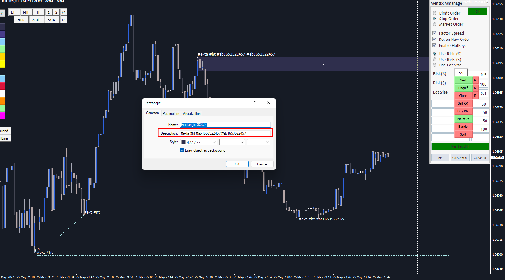 1. In the same way we can set the number for close % when we install Mmanage on a graph, it would be nice to also be able to set the default risk ($ and %) and why not also the Lot size (even if I don't use it).