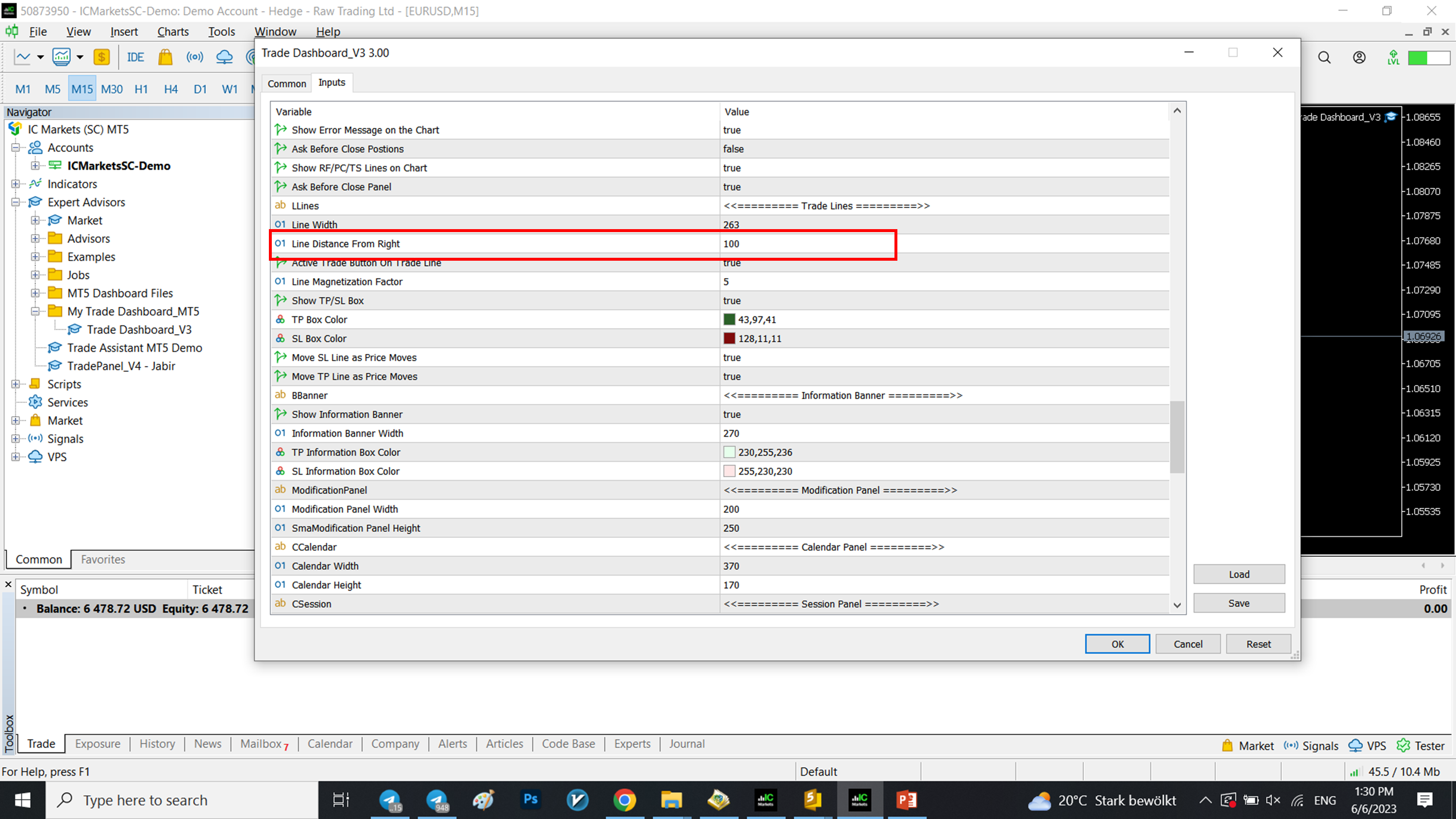 Hi, your first request has been fulfilled. now you can set the distance of trade lines from right. Regrads.