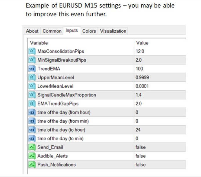Added sample settings for EURUSD to the screenshots section.