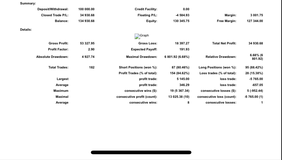 I start using 05/10/2023 and this is the detailed statement. 100k demo account on fpmarkets. Only this ea.