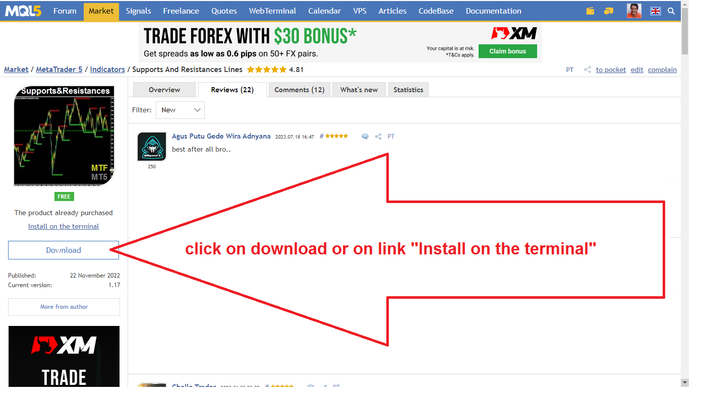 you can download directly from this page, the browser will ask you to open you metatrader, and you click in yes
