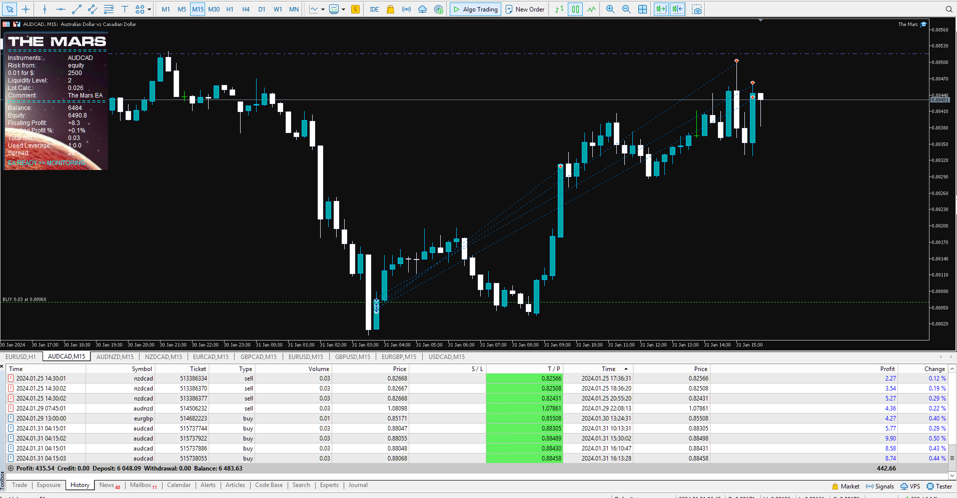 AUDNZD, NZDCAD, AUDCAD - M15 - 6K account