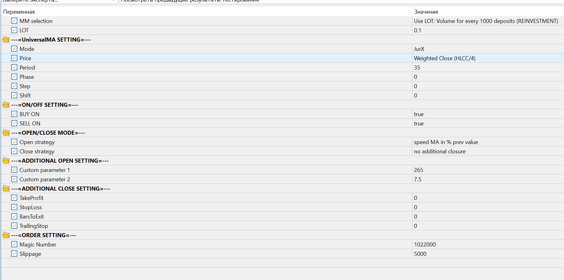 вот такие параметры