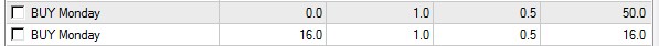______________________Start________Step______StopBUY Monday______________0___________1_________50