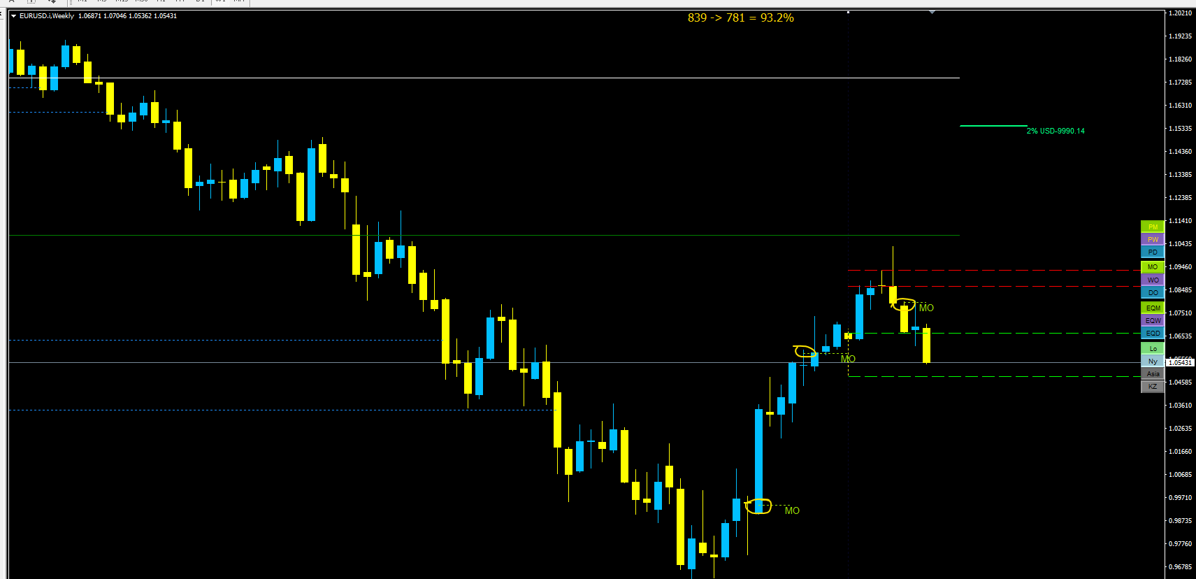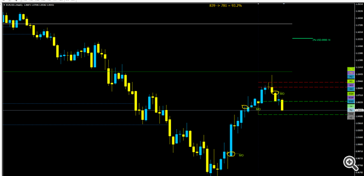 I am looking at the last month's Monthly Open for the EURUSD. The indicator puts the MO somewhere in the middle of the candle.