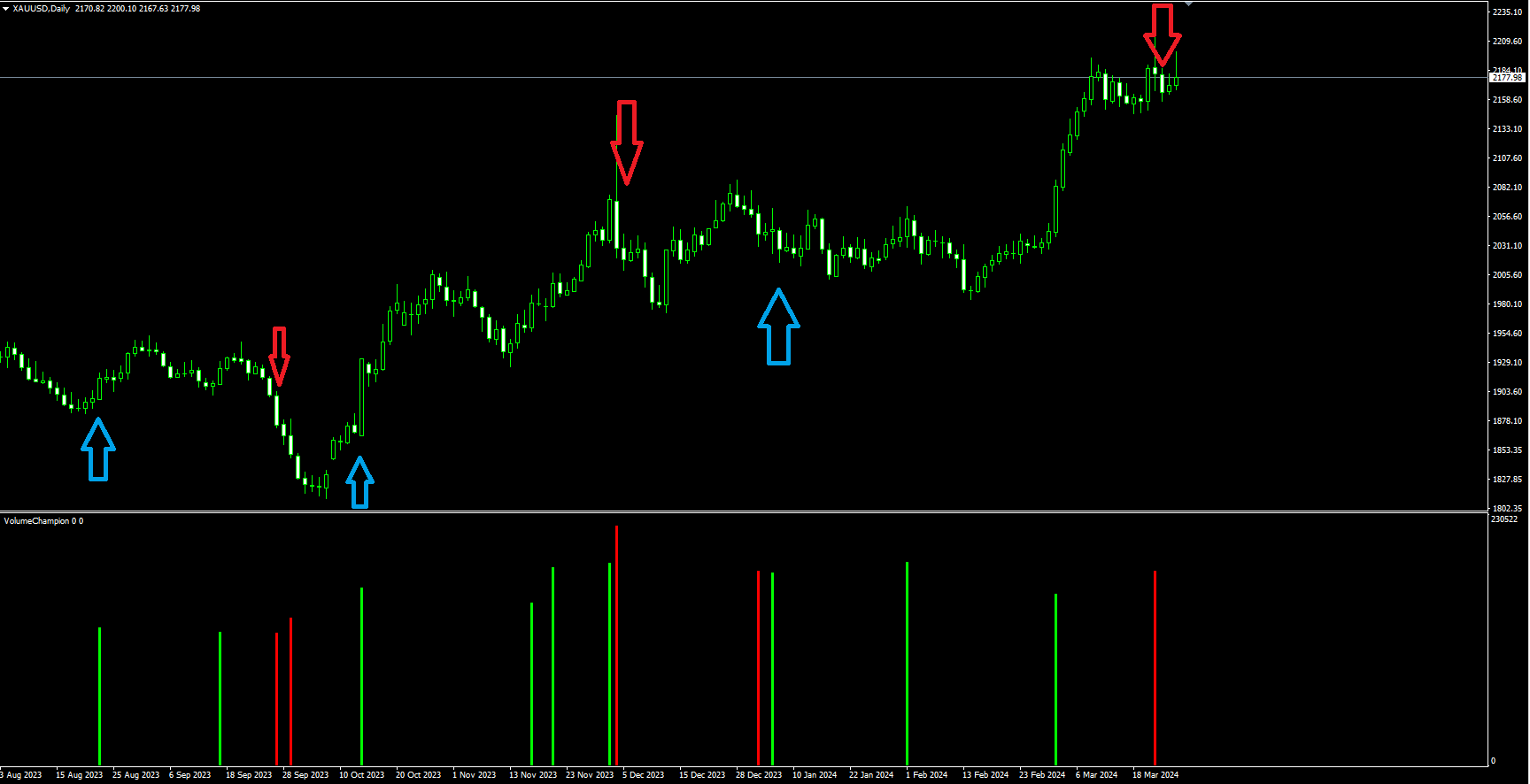 Hello! This tool is first of all for higher time frames like D1 and also it is for instruments with a lot of trading volume like Gold for example. The tool detects changes in volume which you can use to determine possible direction of this or that instrument.