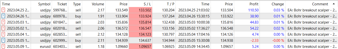 Bohr has been performing well. Stick to the recommended USDJPY EURUSD pairs. The backtest on XAUUSD appeared to perform well, but on a live account has had losses, probably due to slippage etc.
