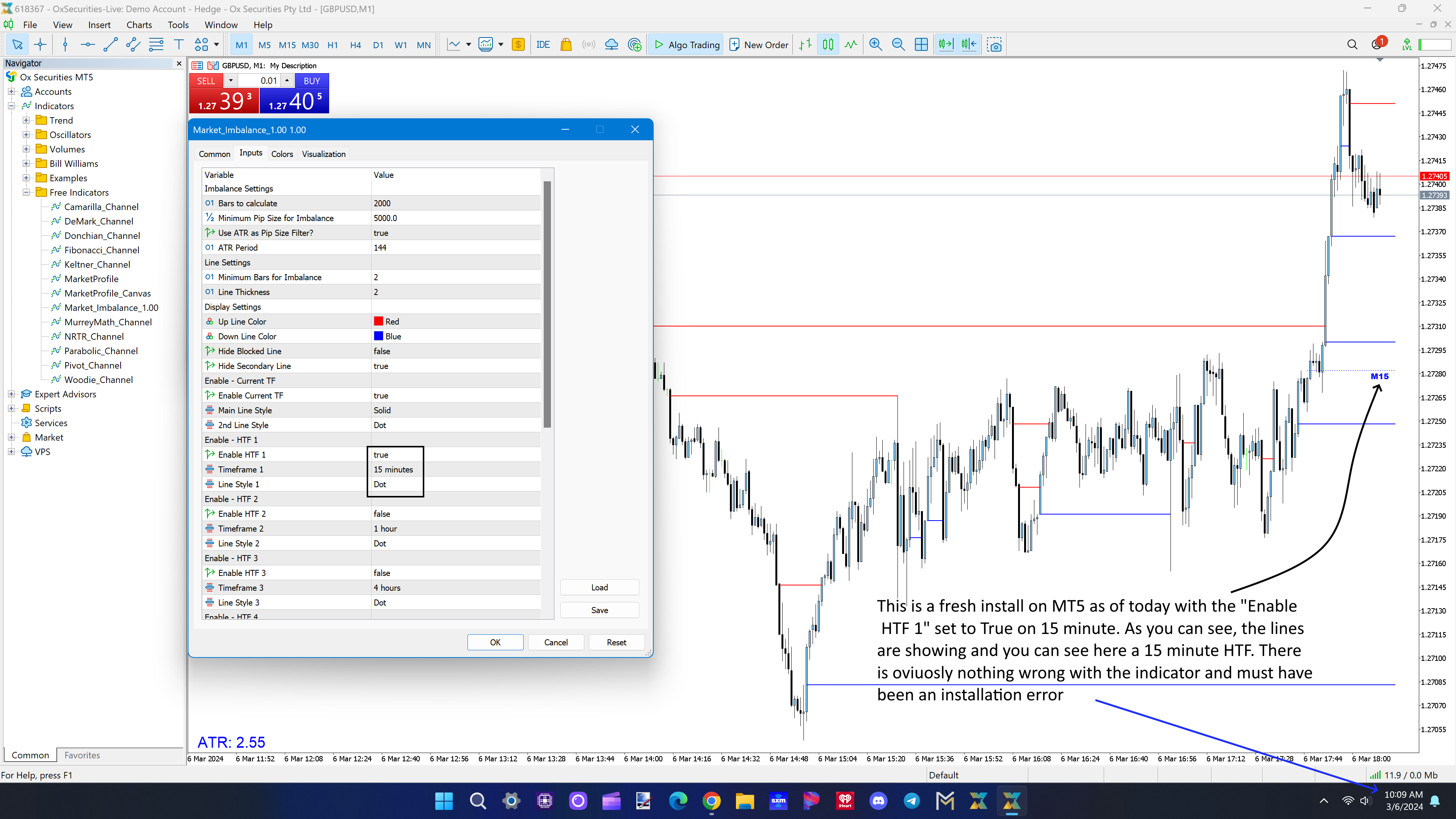 As we discussed in several PM's, the indicator was loaded on a fresh MT5 install and there is no issue on my end. There could possibly and error regarding your issue or with the fact you are using MT5 on a Mac. You may need to contact MQL5.com support to resolve this matter.