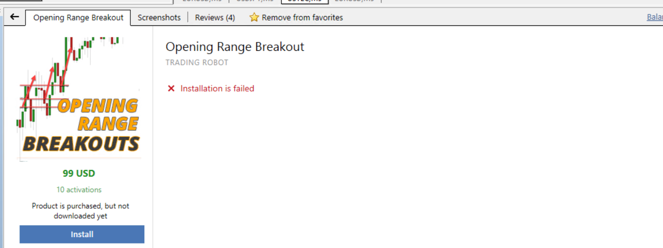 Hi, I youst bought your new great EA. On one real account the EA is working fine with high performance and low DD. But on a second real account with the same Broker and setting I got the message " Uniit Opening Range EA Reason 5. What is wrong? Kind regards from Switzerland