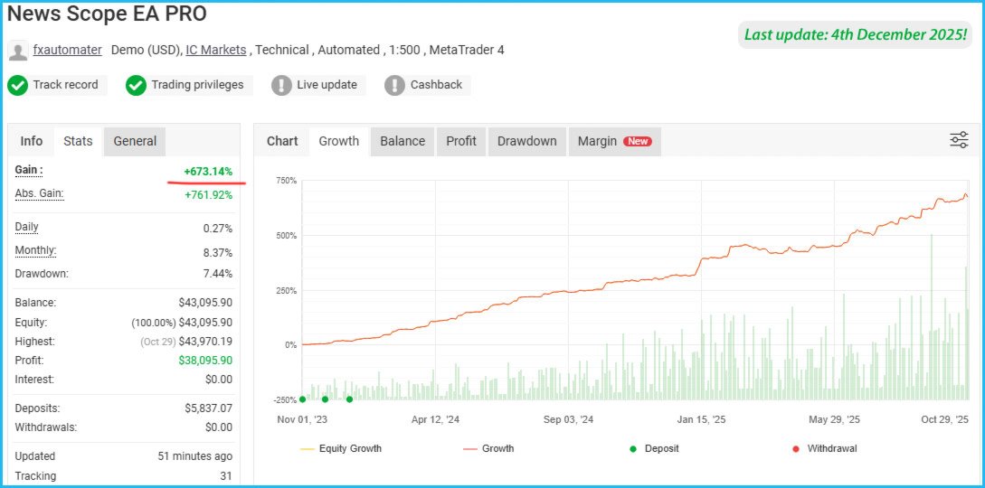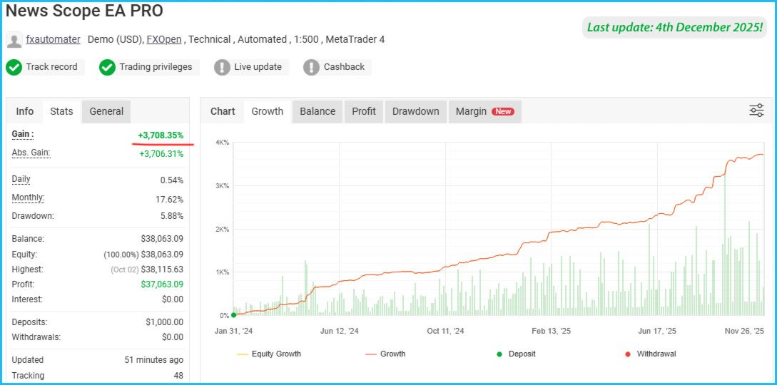 News Scope EA PRO ist ein voll automatisiertes Handelssystem, das Ihnen einen Großteil der Arbeit abnimmt, so dass Sie sich um andere Dinge kümmern können!
