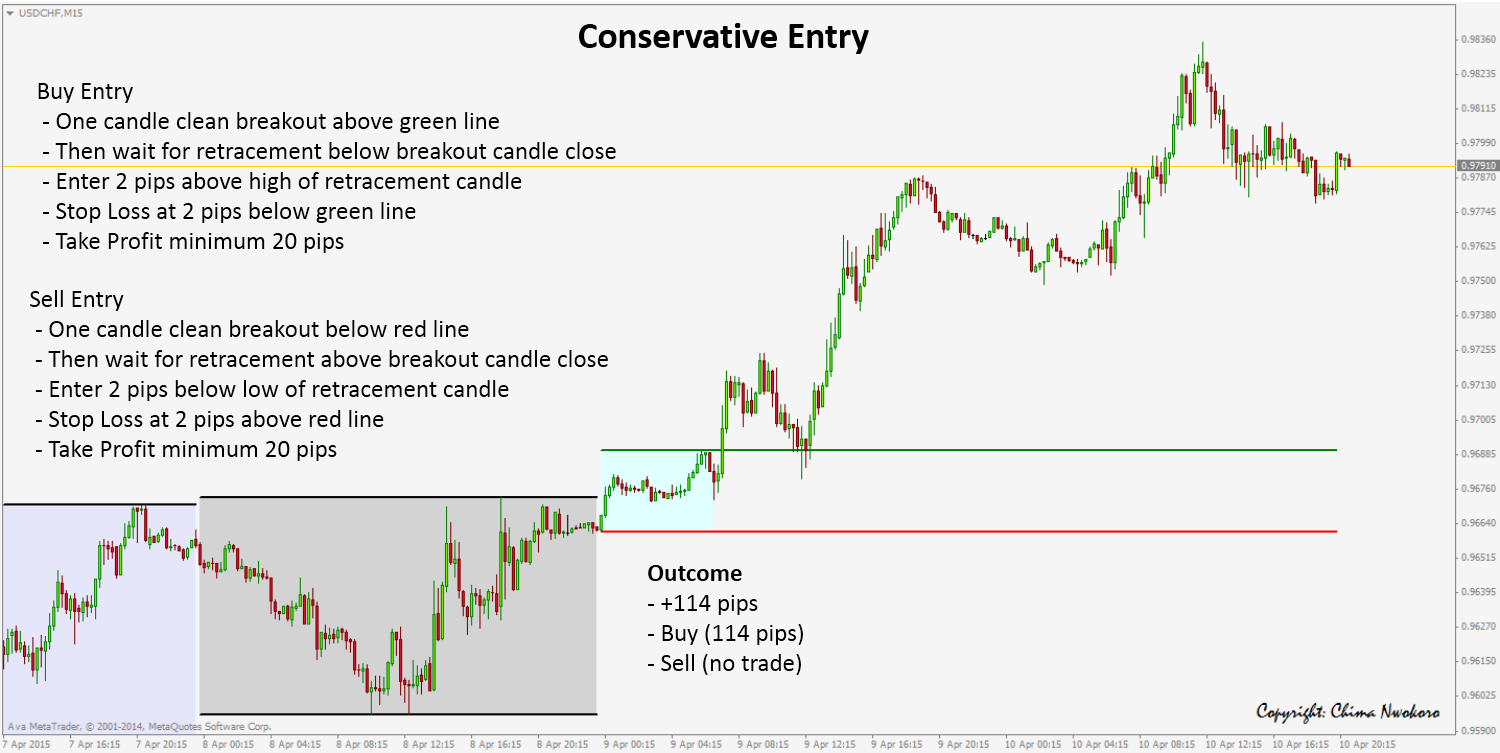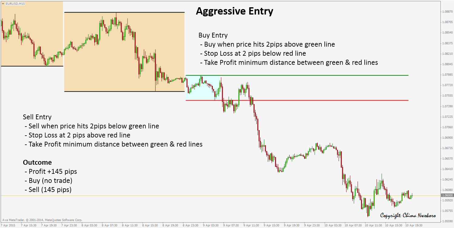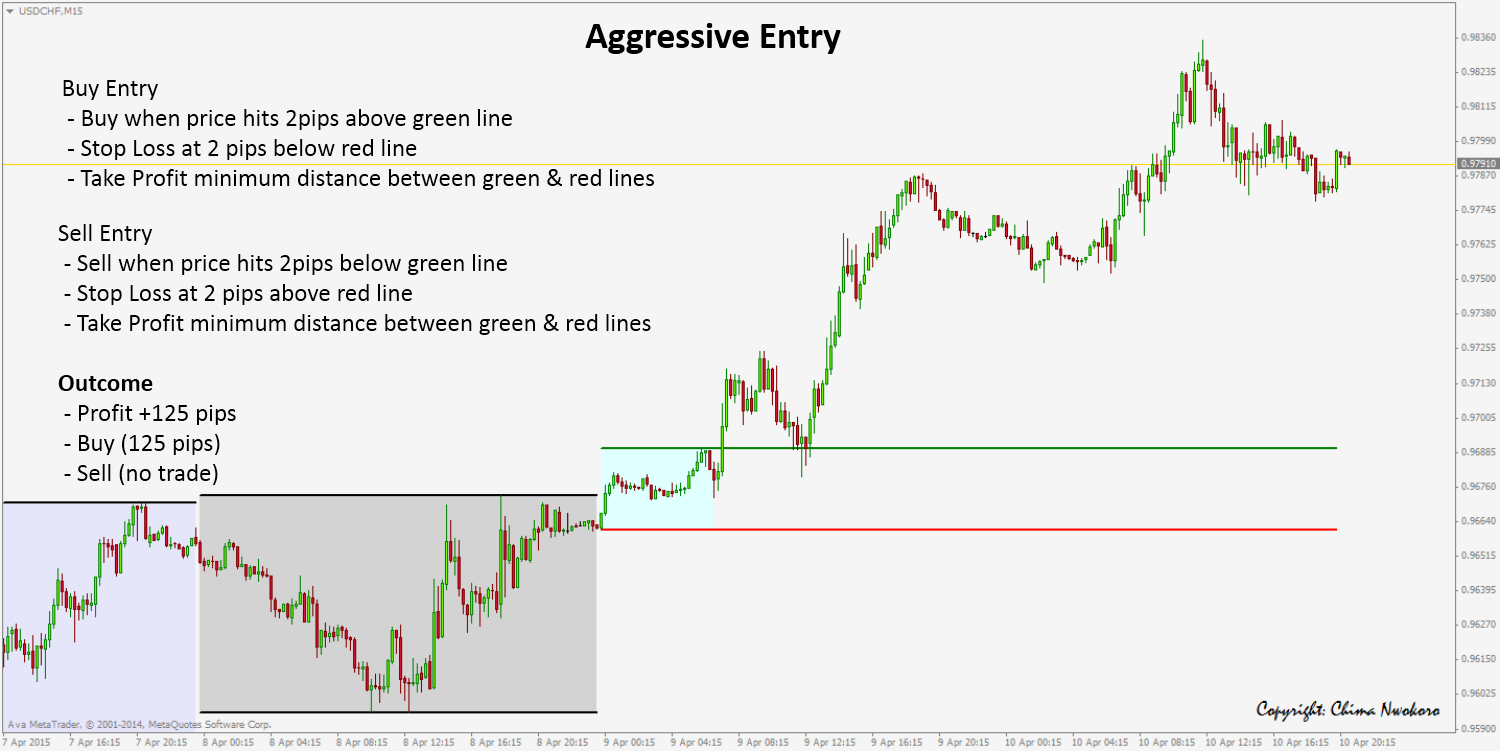 Hi wild_hedgehog, see attached photos of my recent detailed review and it should give you an idea of how I trade the strategy. There is either an aggressive entry or a conservative entry.