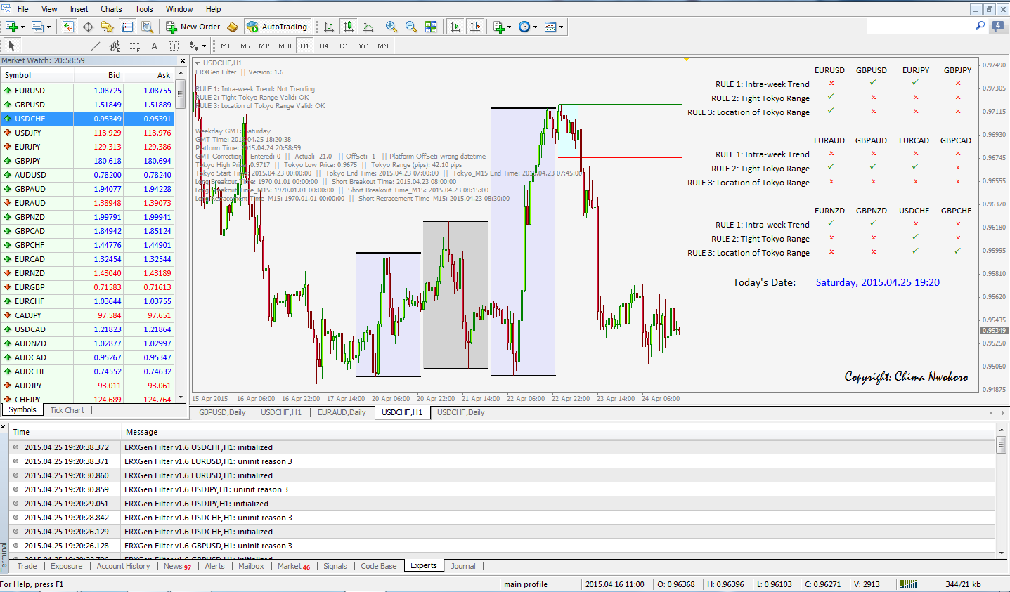Hope you took the USDCHF trade as signaled by the ERXGen Filter. a 150 pip move. See video review below