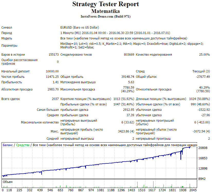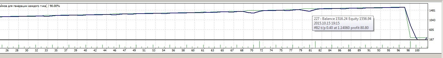 Подскажите, пожалуйста, попробовал разные настройки на паре Eurusd, каждый раз тестер заканчивает кочергой, что не так?