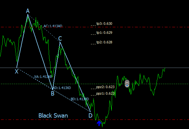 By the way, PRZ zone display fisrt time pattern search. In mode Harmozup in range [min, max], point D may move from min level to max level, so some time D go out PRZ zone. It not big problem because buy or sell signal only display when price confirmed by Dochian channel or Japanese reverse candle patterm. Your image is a typical case of D move down outside PRZ, but when buy signal appear, price go up...