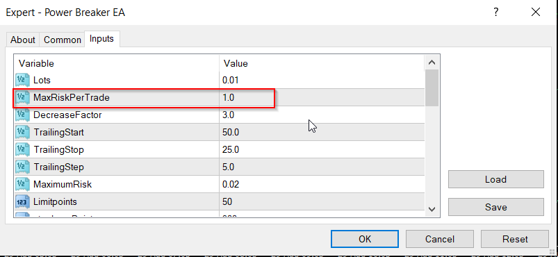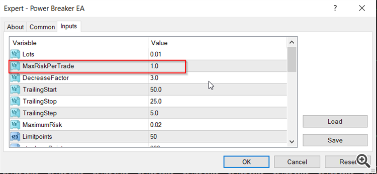 Hi. Why does it start with 0.01 for all currency pairs? For example, I started EURUSD with 5 hundredths, but it starts with 0.01. But for gold, the right amount is used. For example, if I start with 0.07, it starts with the same value