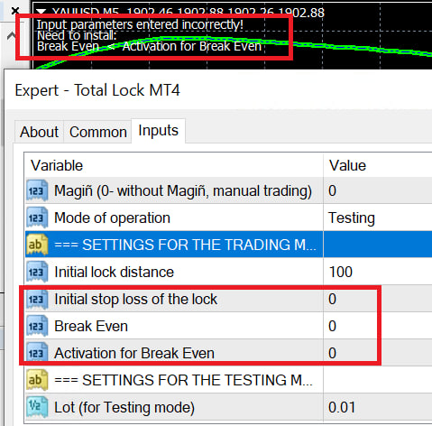 because now if I set stop loss, break even and activation for break even to 0, it said input parameter entered incorrectly, need to install break even, activation for breakeven